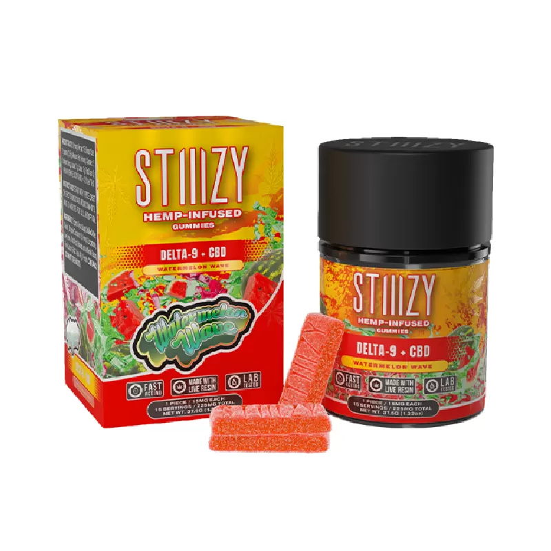 STIIIZY D9 + CBD 1500MG GUMMIES BLUE RASPBERRY BLAST – WATERMELON WAVE (Box of 10)