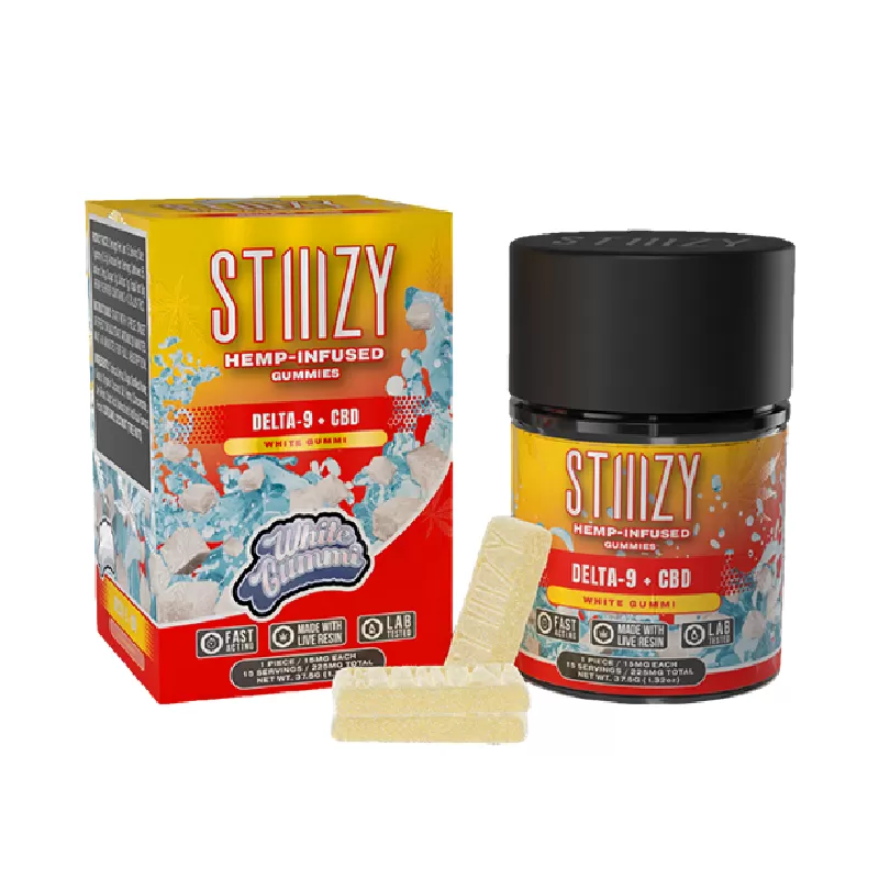 STIIIZY D9 + CBD 1500MG GUMMIES BLUE RASPBERRY BLAST – WHITE GUMMI (Box of 10)